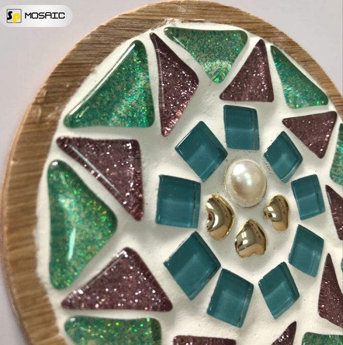 1.Material: Bamboo coaster model, Mosaic particles of various elements, Caulk.