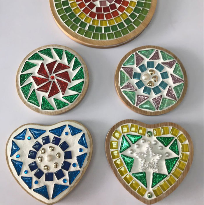 1.Material: Bamboo coaster model, Mosaic particles of various elements, Caulk.